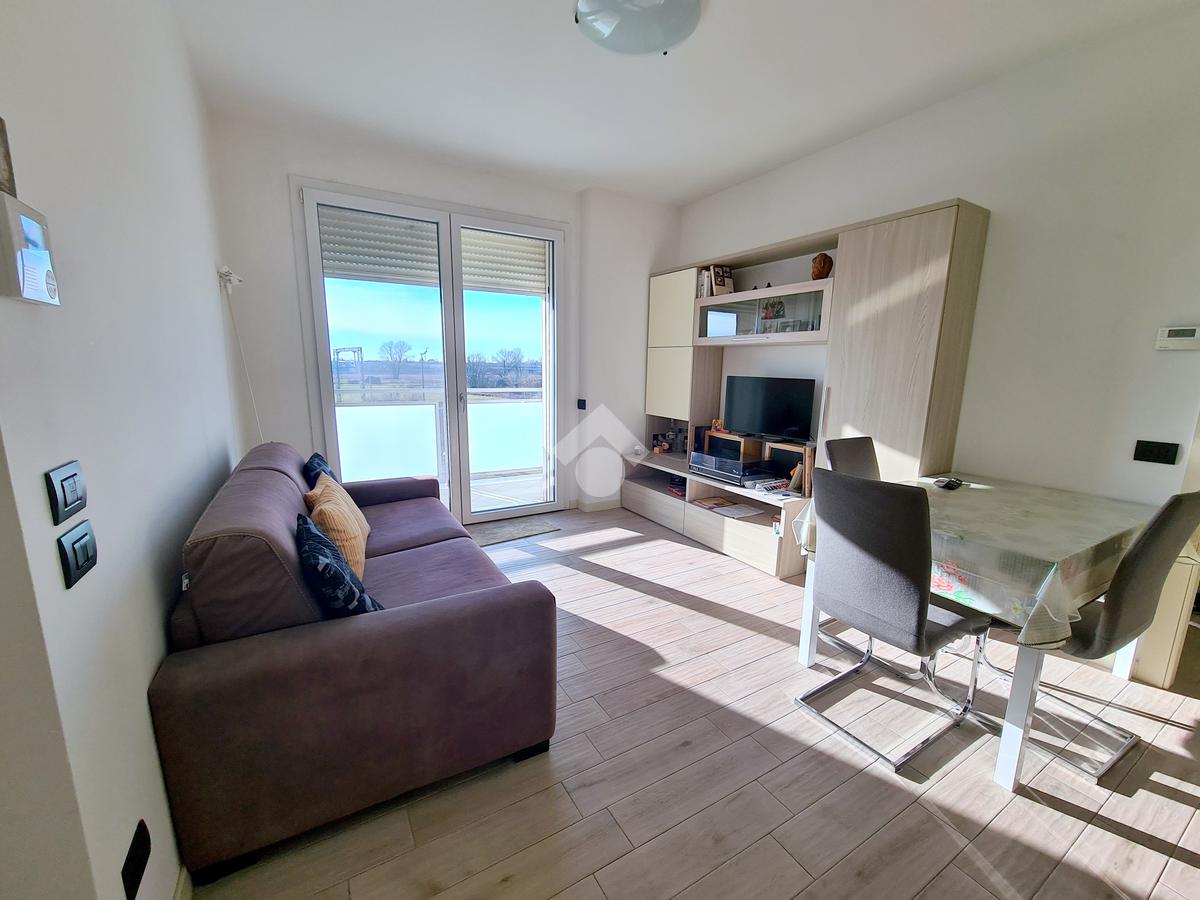 San Giuliano Milanese - Borgolombardo: in palazzina di recente costruzione proponiamo luminoso appartamento composto da soggiorno con cucina a vista, camera da letto, bagno e ampio balcone esposto a sud. Completa la proprietà la cantina. L'immobile è arredato e libero subito. La zona è servita da mezzi e negozi.
